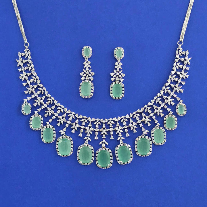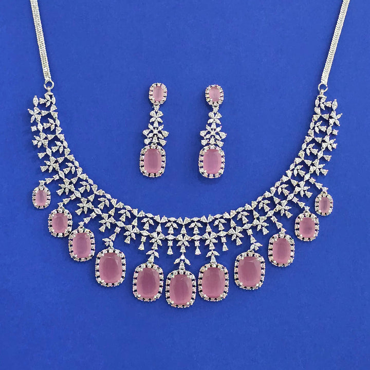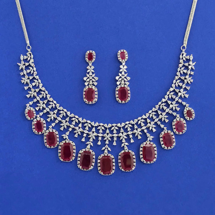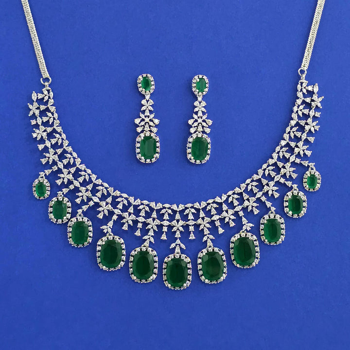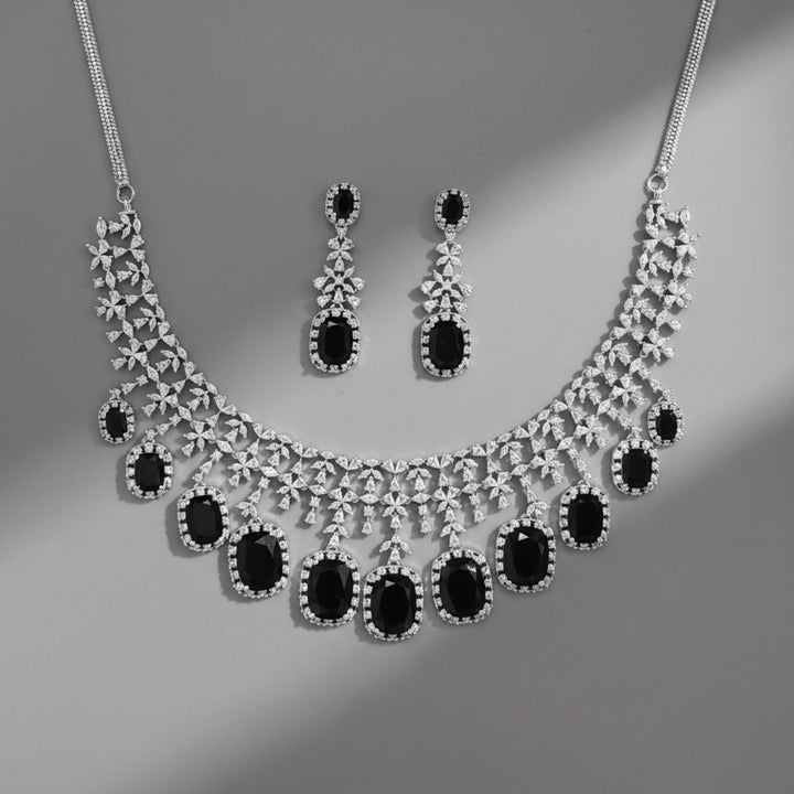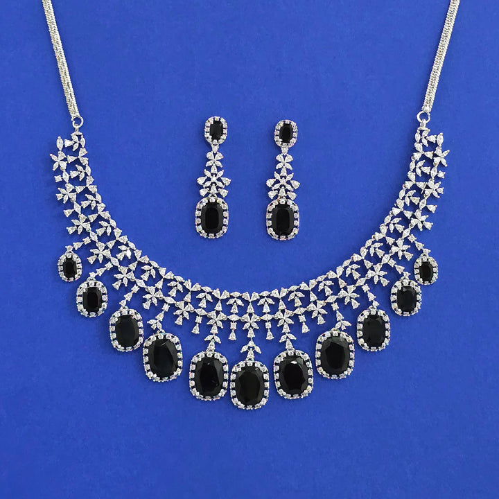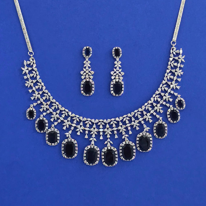 441813 American Diamond Classic Necklace Set With Rhodium Plating