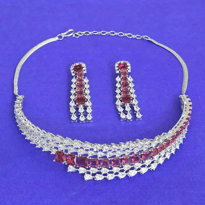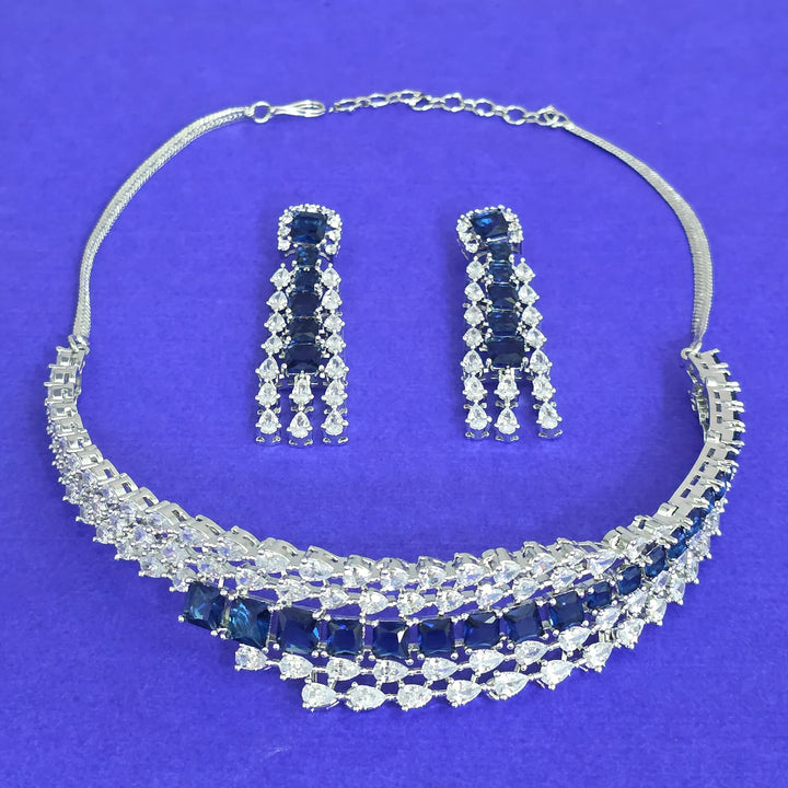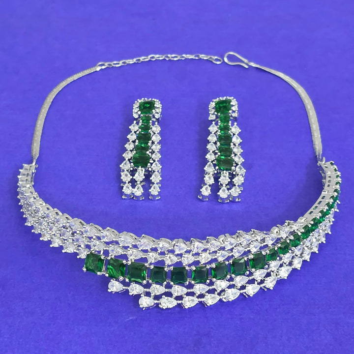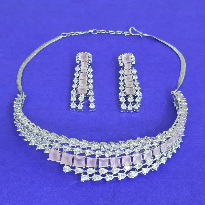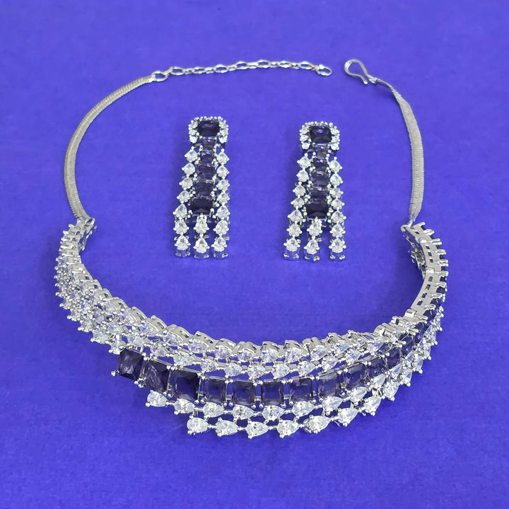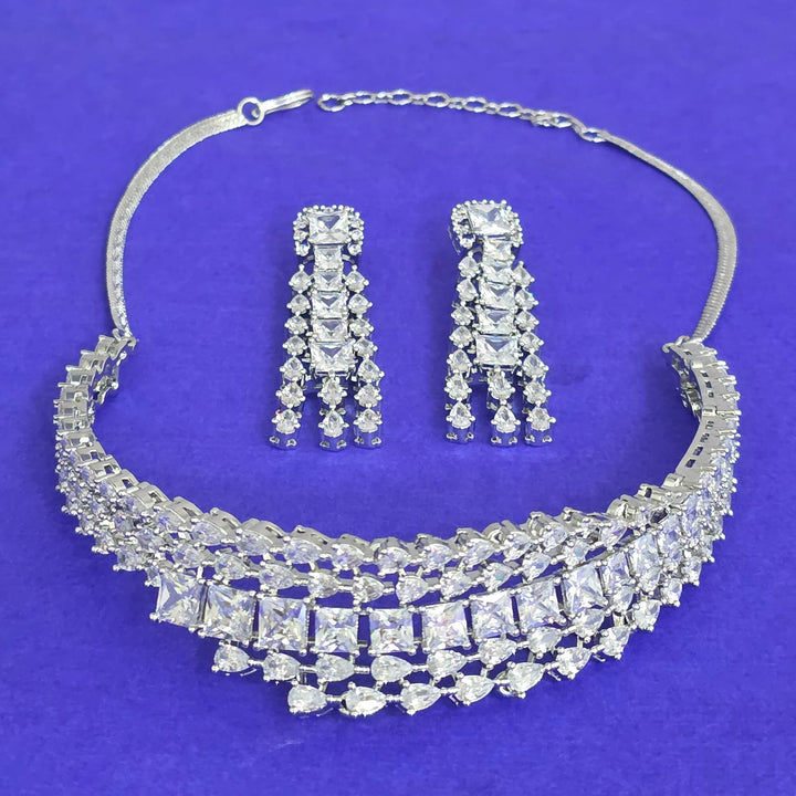441817 American Diamond Classic Necklace Set With Rhodium Plating