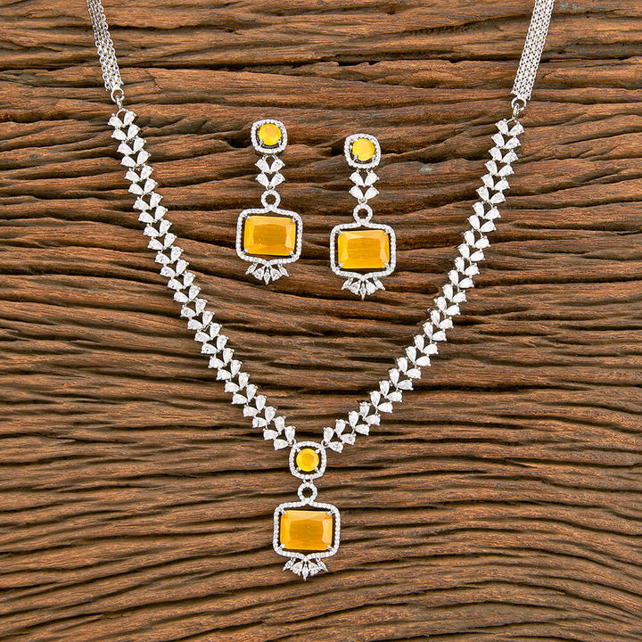 429867 American Diamond Classic Necklace With Rhodium Plating