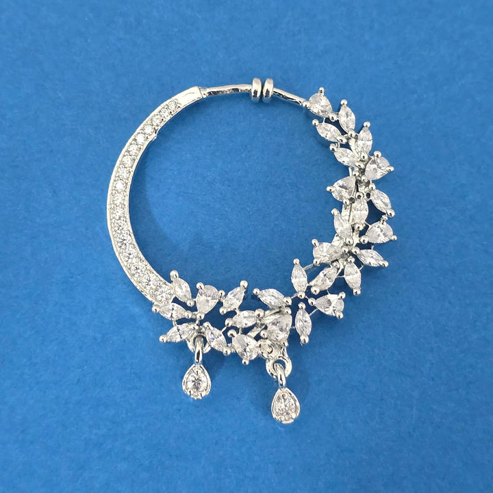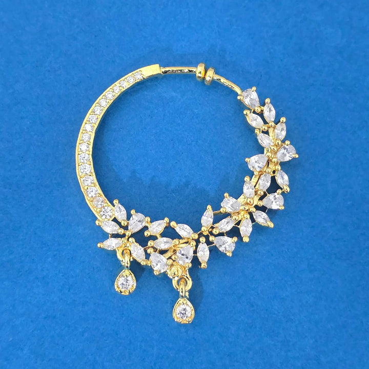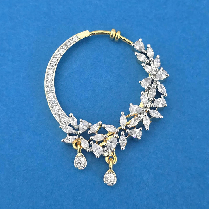 Weight: 5.0 Grams, Height = 37 Mm || Width = 30 Mm,Pressing Nose Ring,2 Tone Plating,Gold Plating,Rhodium Plating,American Diamond Nose Ring