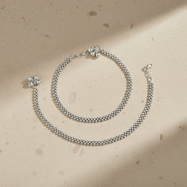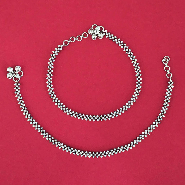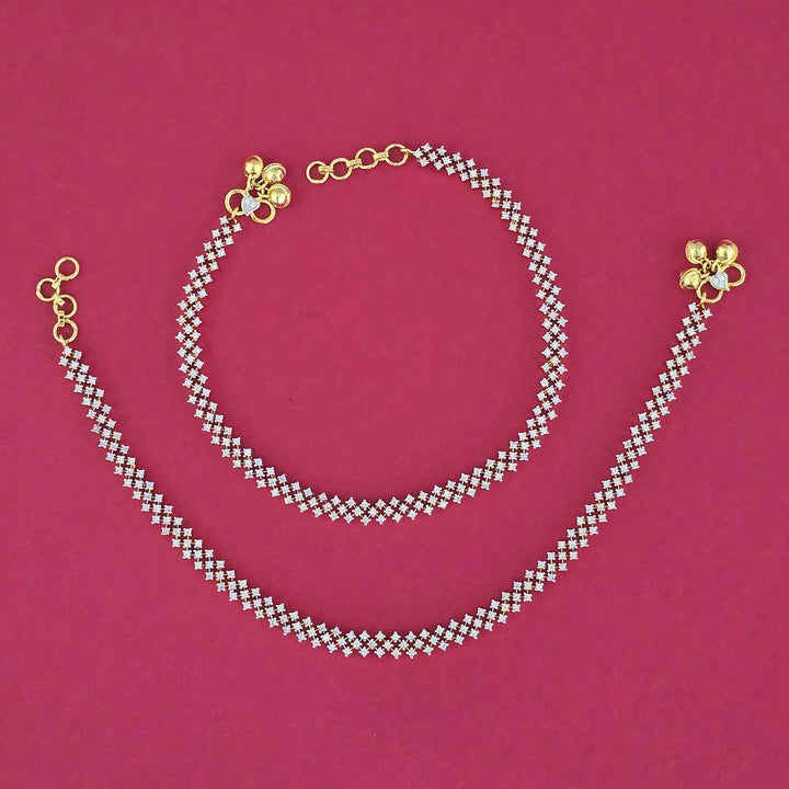 439222 American Diamond Classic Payal With Rhodium 2 Tone Plating