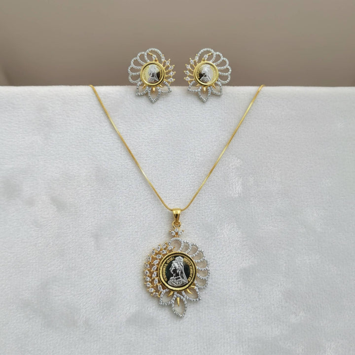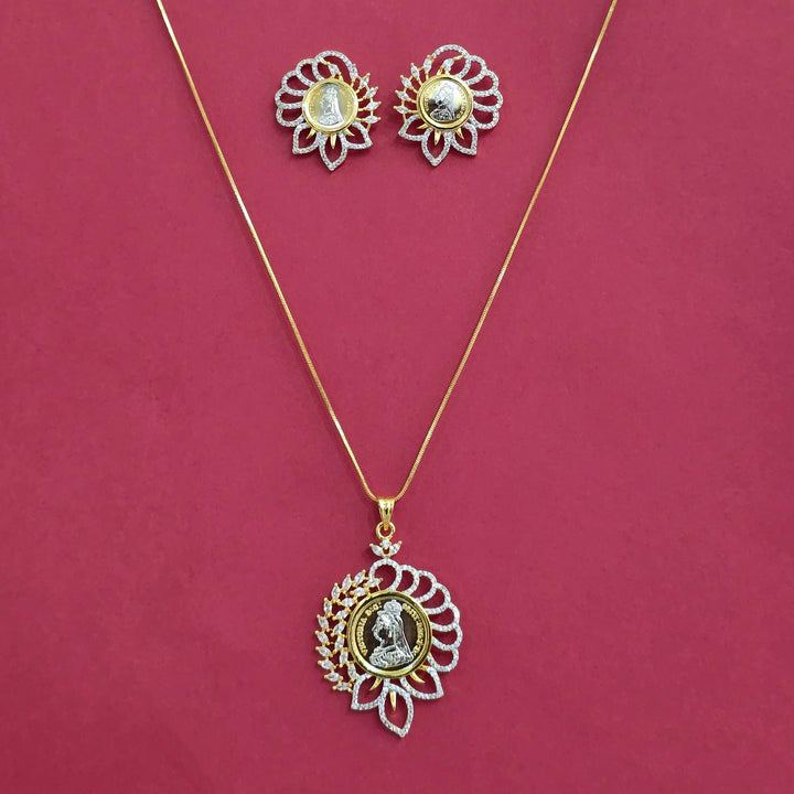 441556 American Diamond Classic Pendant Set With 2 Tone Plating