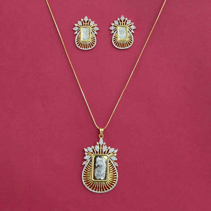 441558 American Diamond Classic Pendant Set With 2 Tone Plating