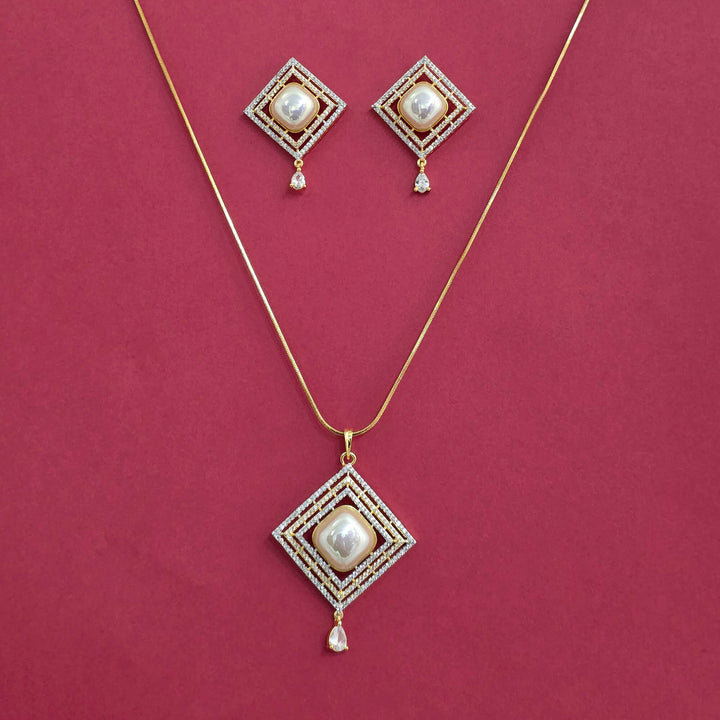 441560 American Diamond Classic Pendant Set With 2 Tone Plating