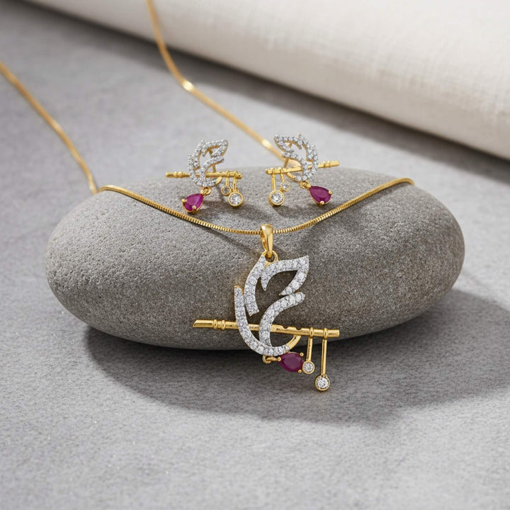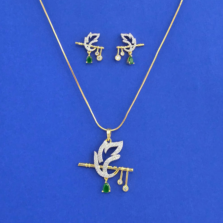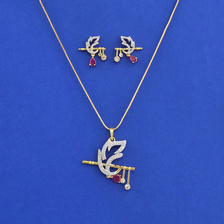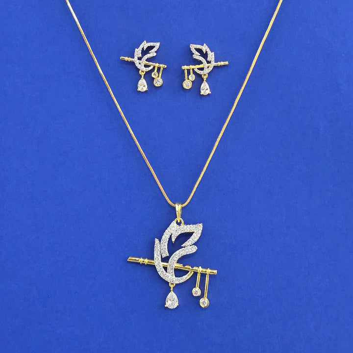 441563 American Diamond Classic Pendant Set With 2 Tone Plating