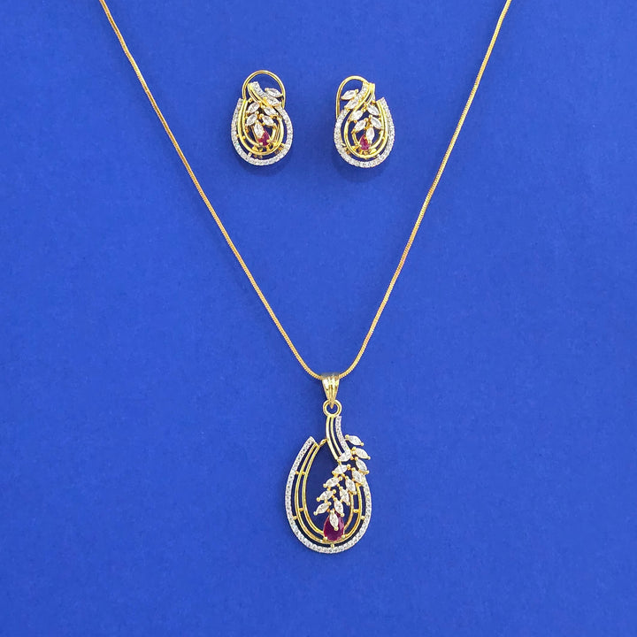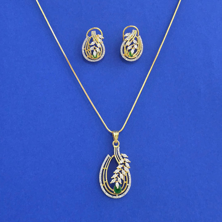 441564 American Diamond Classic Pendant Set With 2 Tone Plating