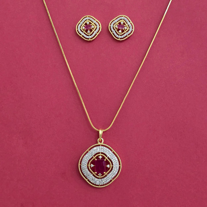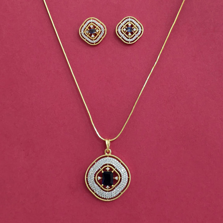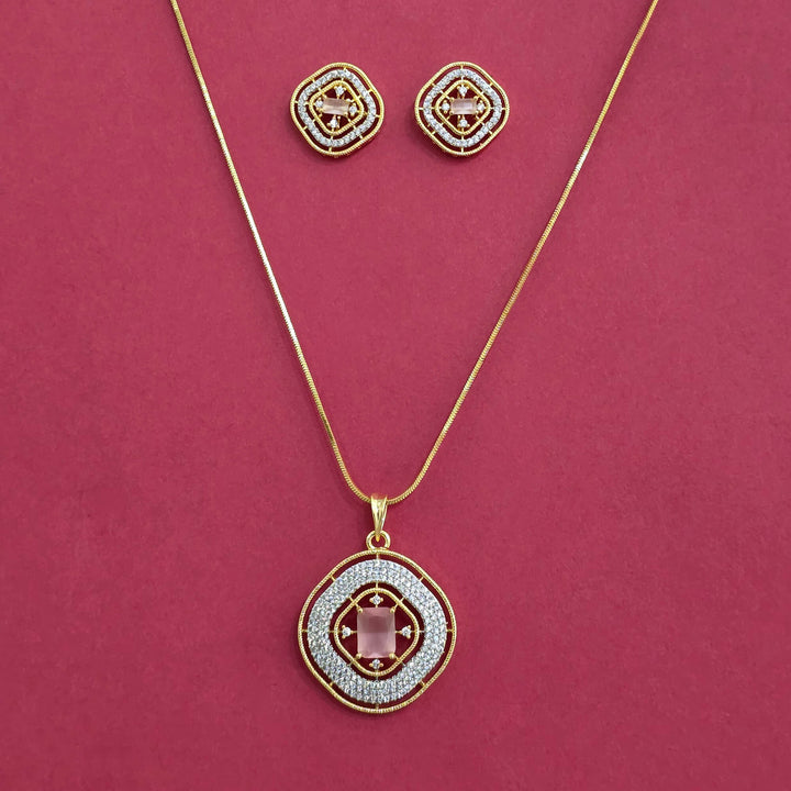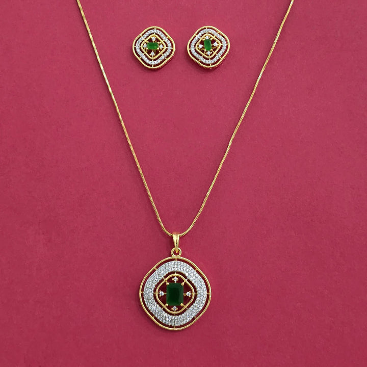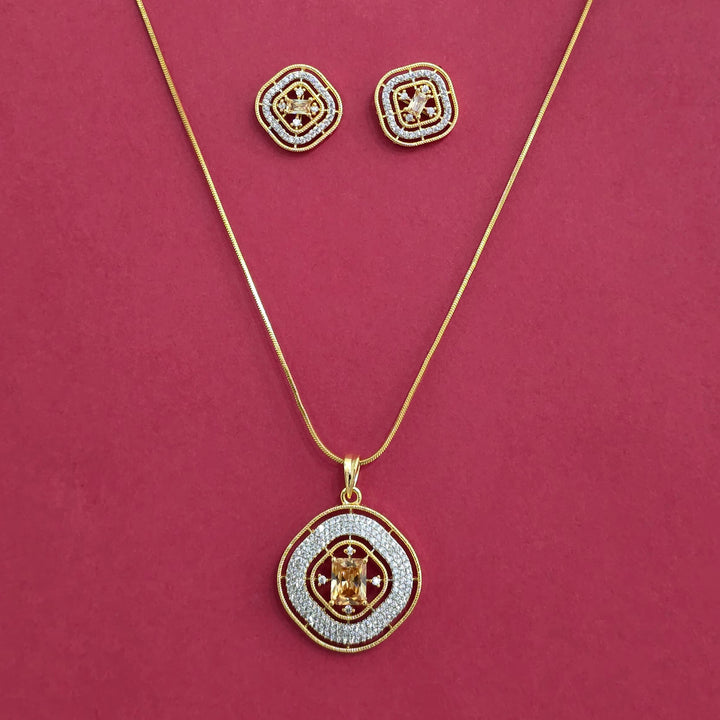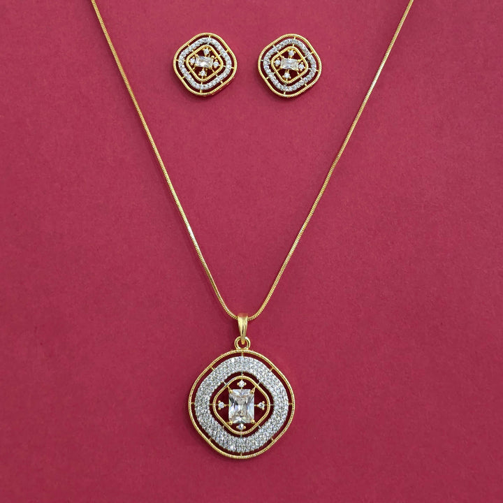441921 American Diamond Classic Pendant Set With Gold Plating