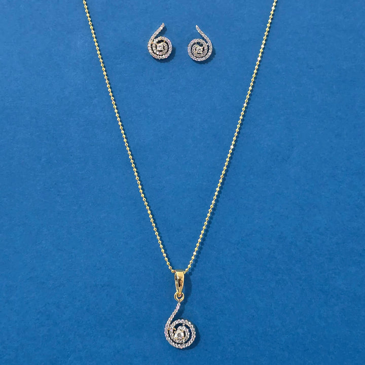 440157 American Diamond Delicate Pendant Set With 2 Tone Plating