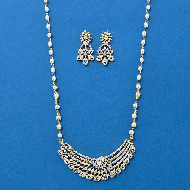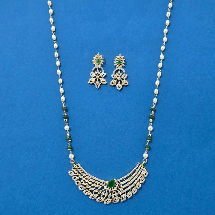 440262 American Diamond Moti Pendant Set With 2 Tone Plating