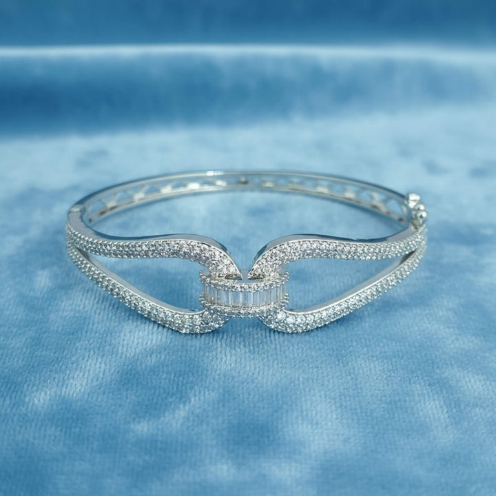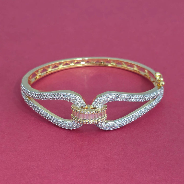 441868 American Diamond Openable Kada With 2 Tone Rhodium Mehndi Plating