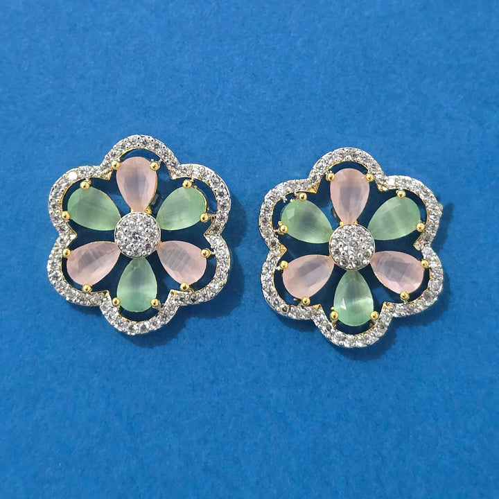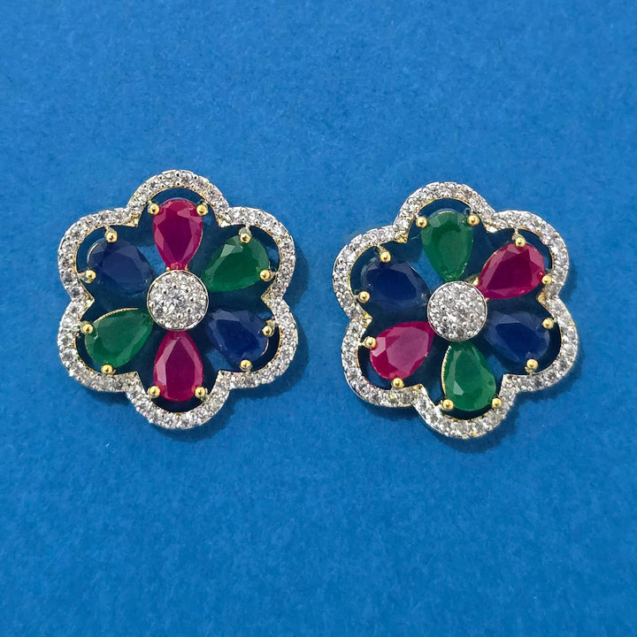 Weight: 8.0 Grams, Height = 20 Mm || Width = 20 Mm,Delicate Tops,2 Tone Plating,American Diamond Earring