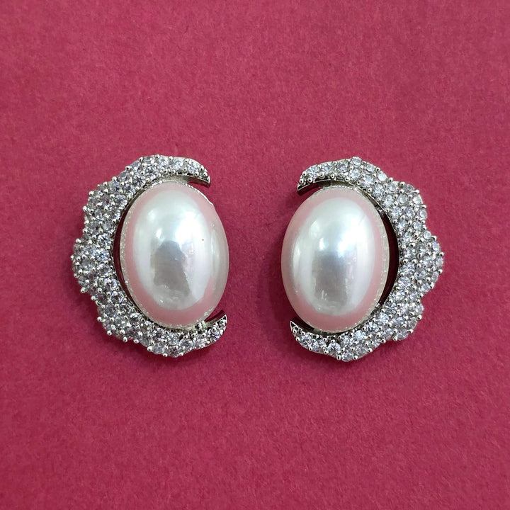 Weight: 6.0 Grams, Height = 20 mm || Width = 15 mm,Moti Tops,2 Tone Plating,Rhodium Plating,American Diamond Earring