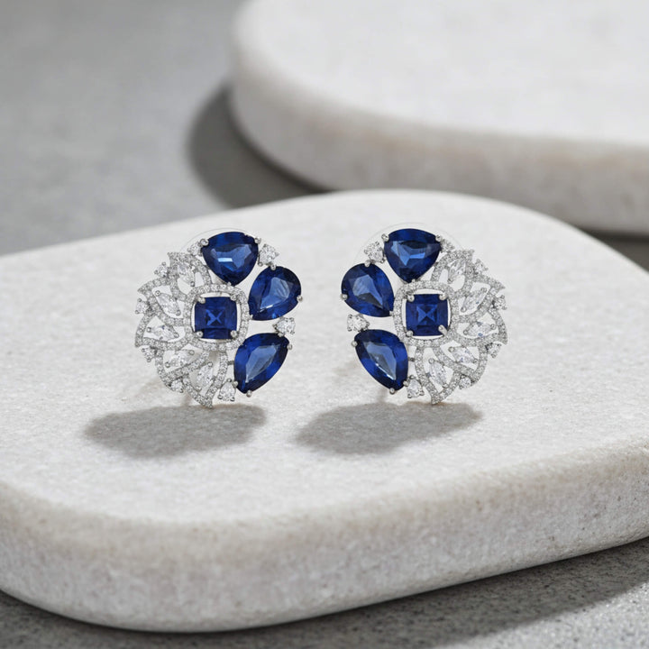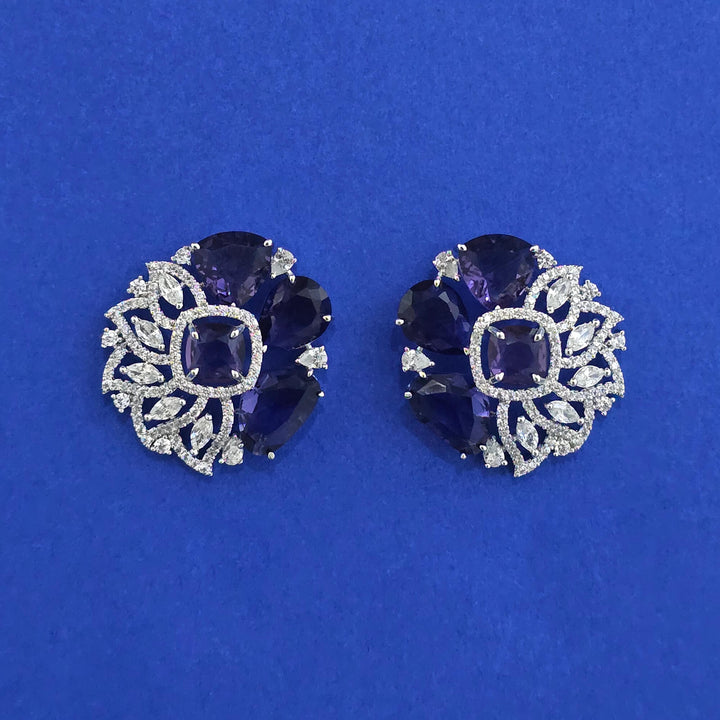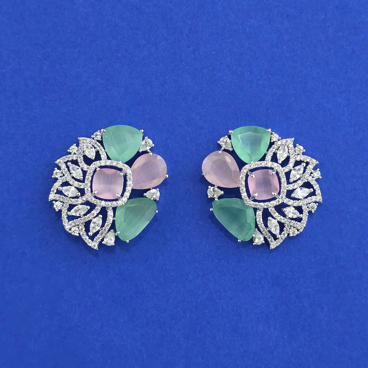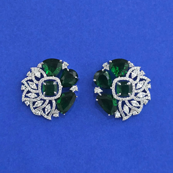 Weight: 9.0 Grams, Height = 26 mm || Width = 22 mm,Classic Tops,Rhodium Plating,American Diamond Earring