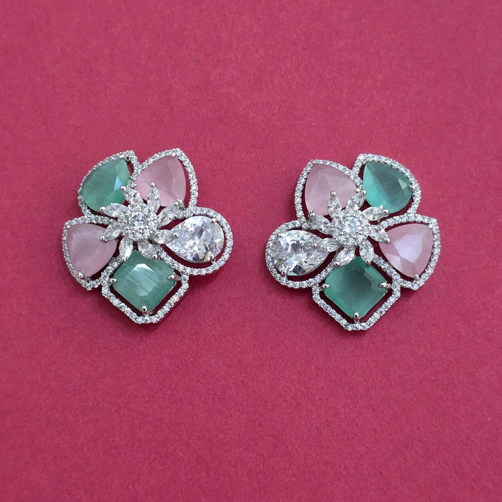Weight: 12.0 Grams, Height = 28 mm || Width = 26 mm,Latest Design,Rhodium Plating,American Diamond Earring