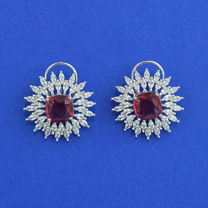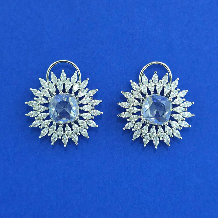 Weight: 13.0 Grams, Height = 26 mm || Width = 26 mm,Classic Tops,Rhodium Plating,American Diamond Earring
