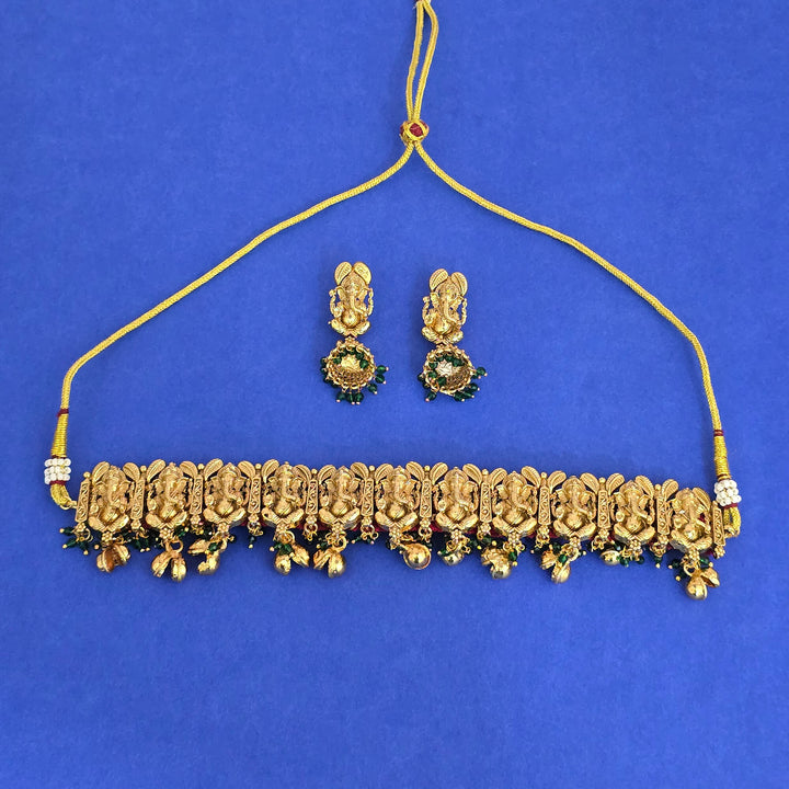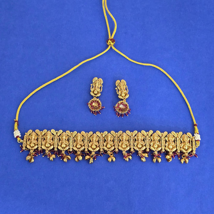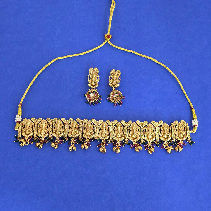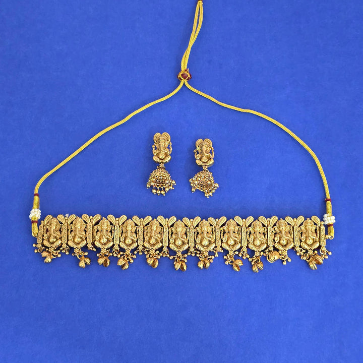 Weight: 105.0 Grams, Earring Height = 50 mm || Width = 20 mm,Regular Size And Adjustable,Temple Necklace,Gold Plating,Antique Necklace Set