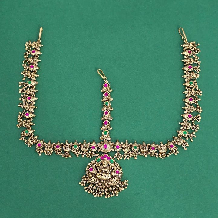 Weight: 70.0 Grams, Length = 13 Inch,Temple Damini,Matte Gold Plating,Antique Damini