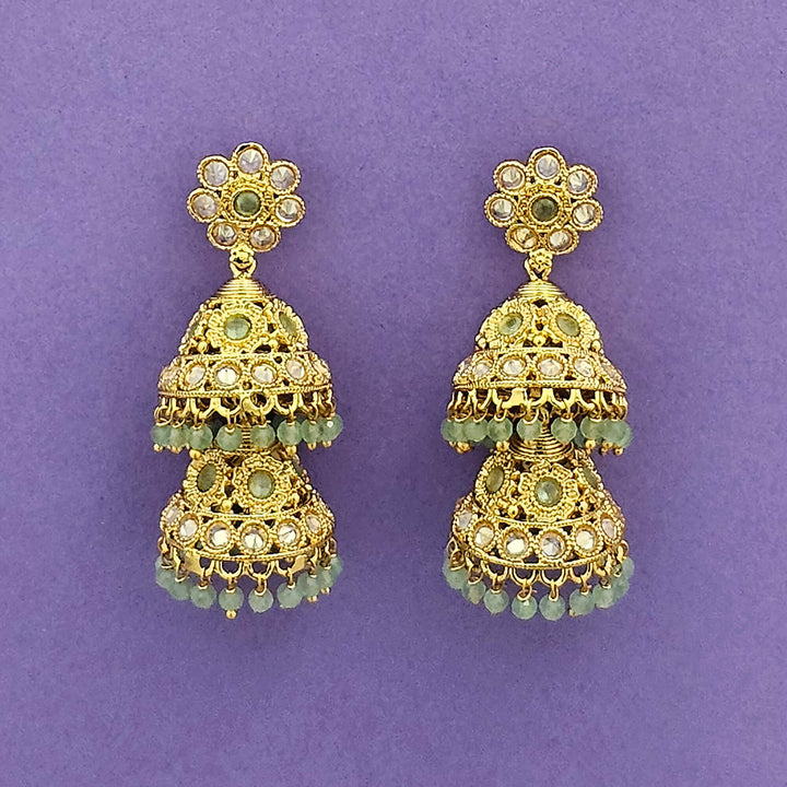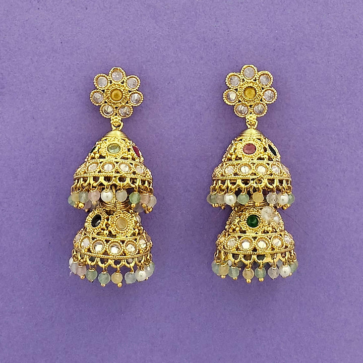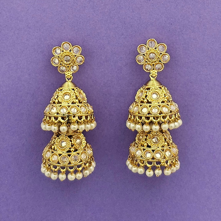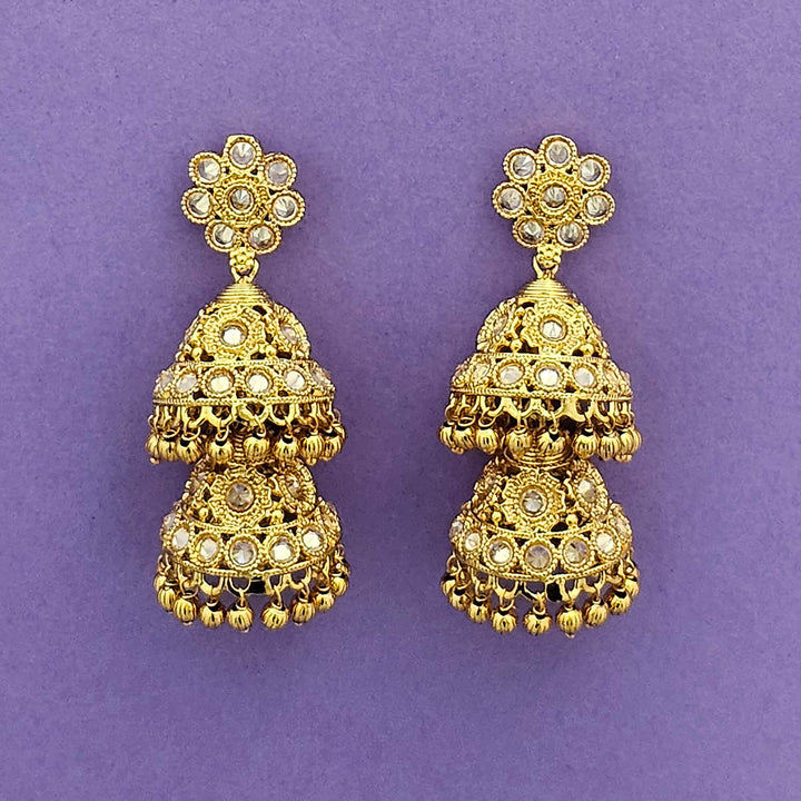 Weight: 28.0 Grams, Height = 56 mm || Width = 24 mm,Double Layer Jhumki,Antique Earring