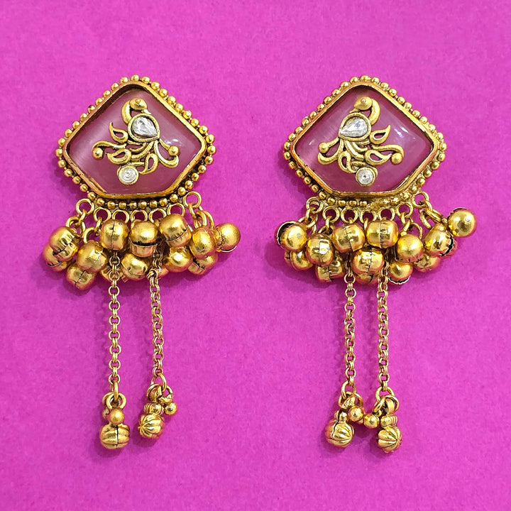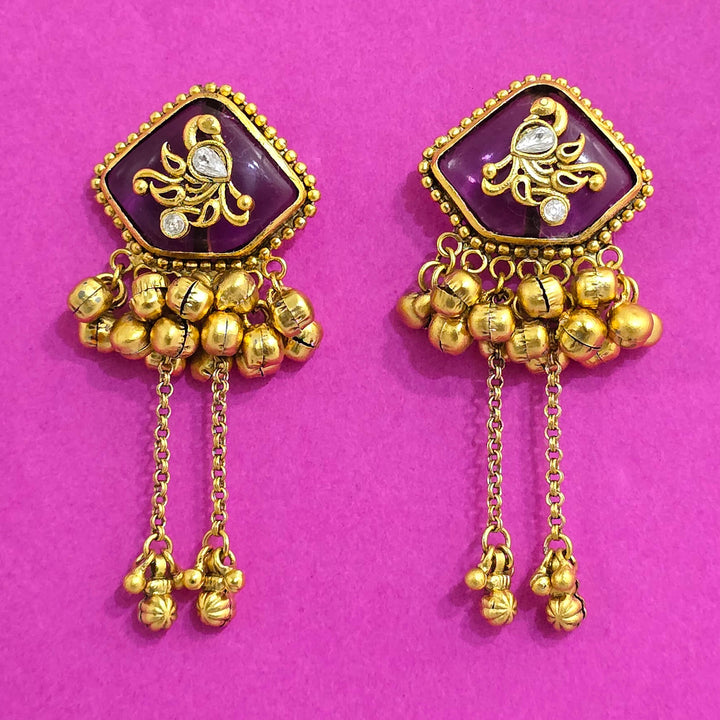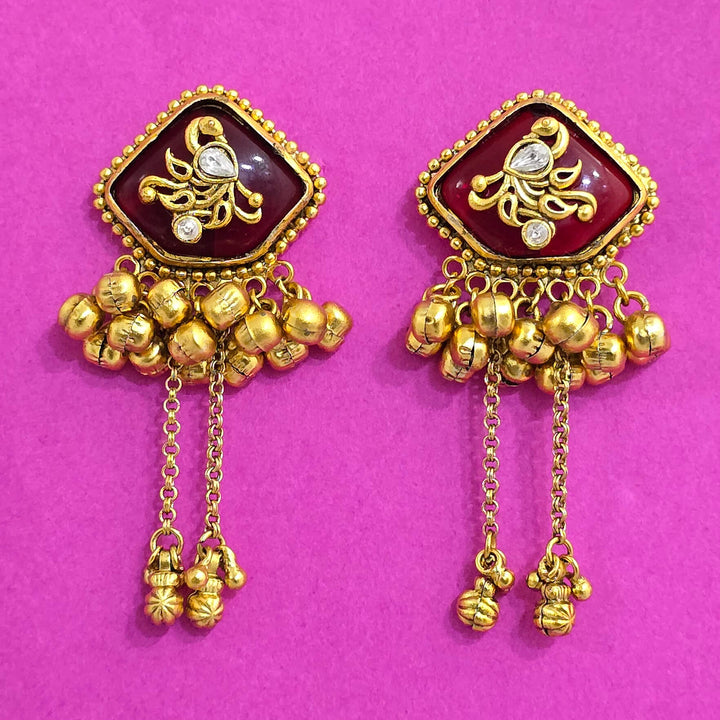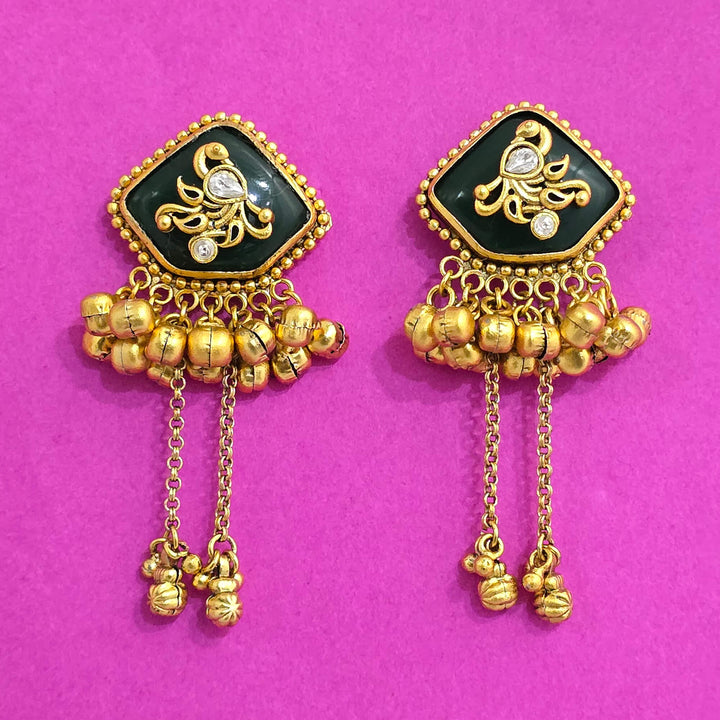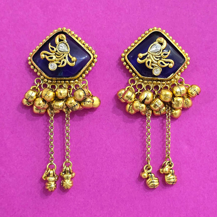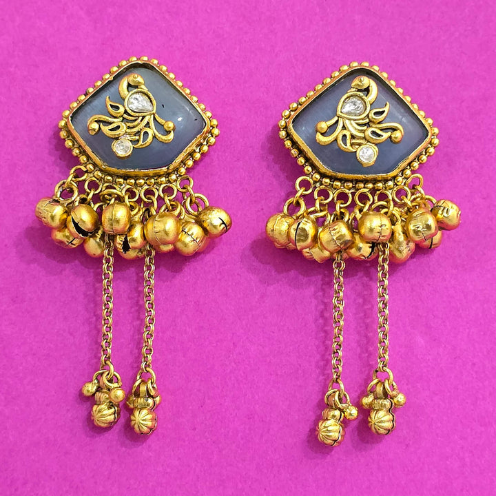 Weight: 27.0 Grams, Ghungru Earring,Height = 62 mm || Width = 35 mm,Matte Gold Plating,Antique Earring