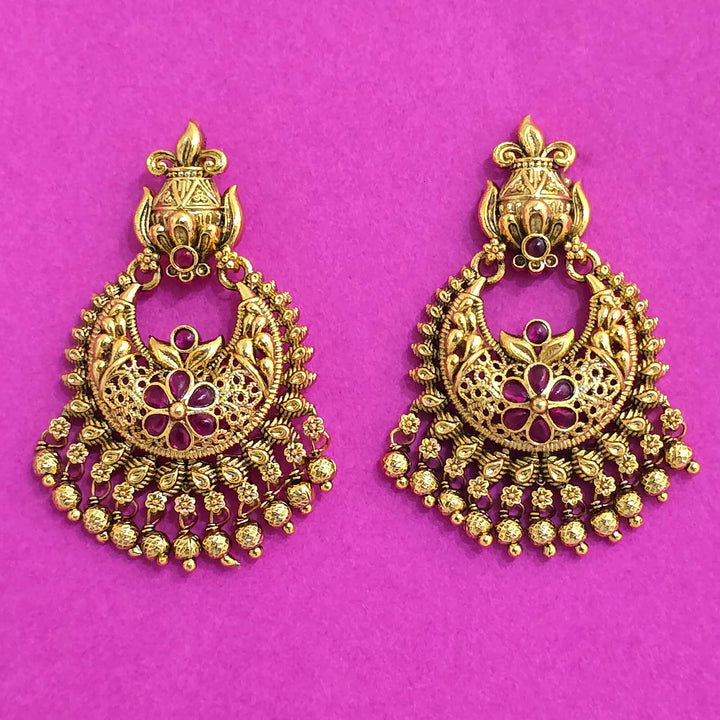 Weight: 19.0 Grams, Height = 45 mm || Width = 32 mm,Chand Style,Matte Gold Plating,Antique Earring