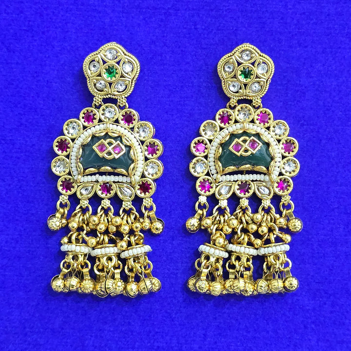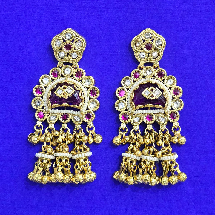 Weight: 36.0 Grams, Height = 65 mm || Width = 30 mm,Moti Earring,Matte Gold Plating,Antique Earring
