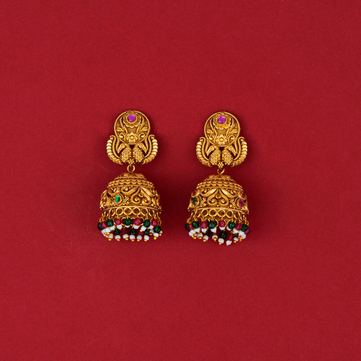 225651 Antique Classic Jhumki With Matte Gold Plating