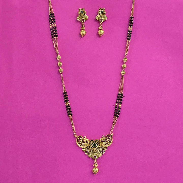 227609 Antique Classic Mangalsutra With Matte Gold Plating