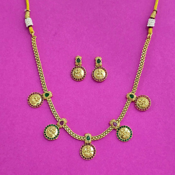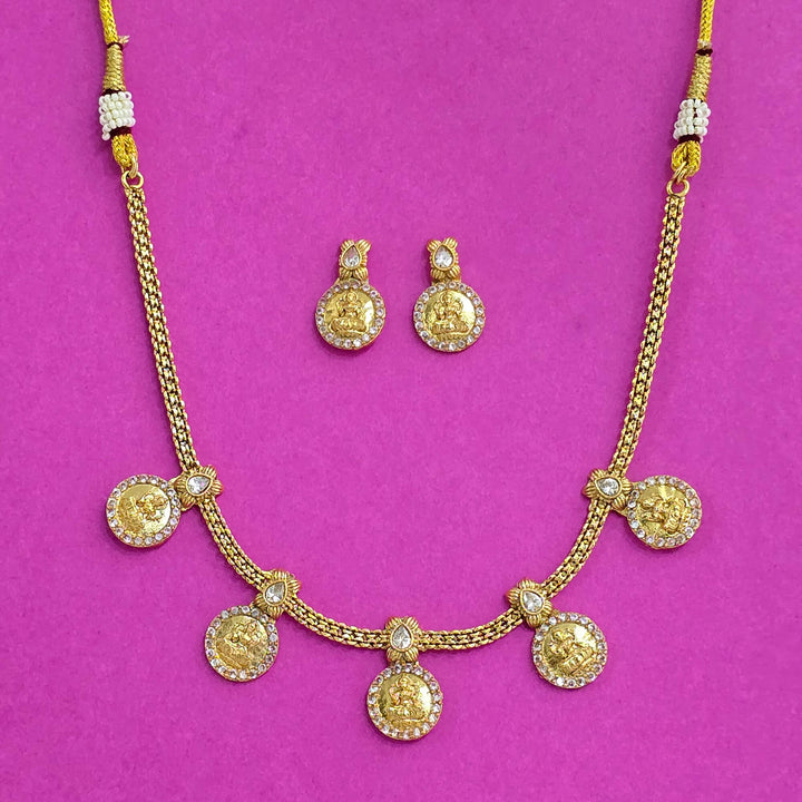 Weight: 27.0 Grams, Earring Height = 22 mm || Width = 13 mm,Regular Size And Adjustable,Temple Necklace,Gold Plating,Antique Necklace Set