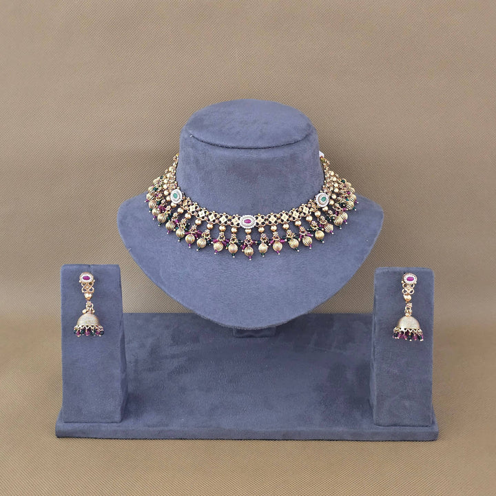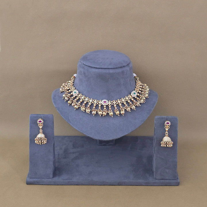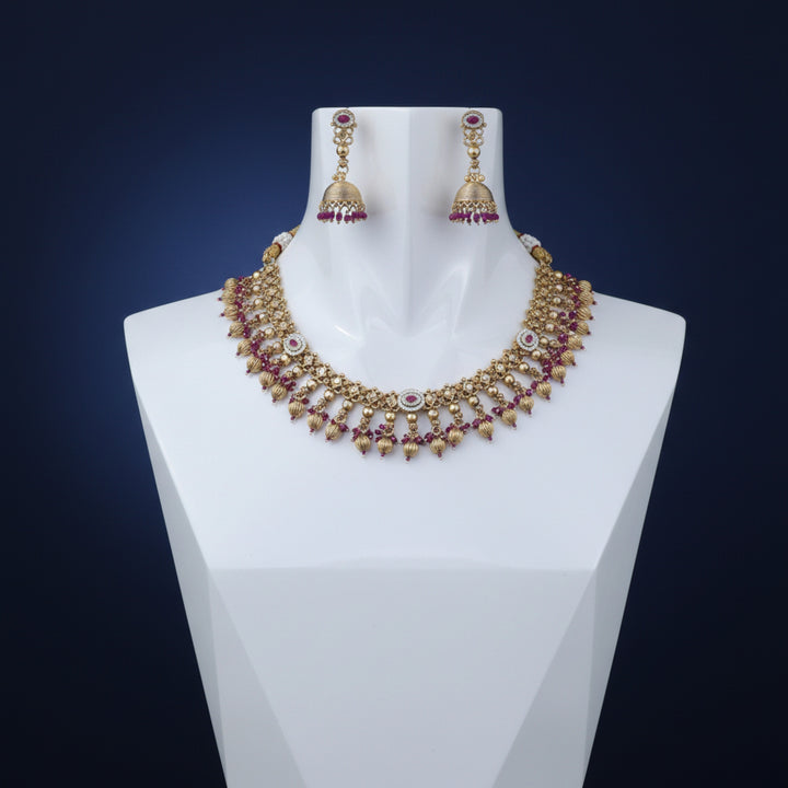 Weight: 67.0 Grams, Earring Height = 45 mm || Width = 17 mm,Regular Size And Adjustable,Gold Plating,Antique Necklace Set