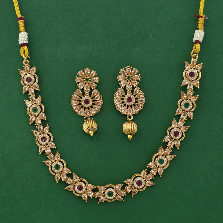 Weight: 38.0 Grams, Earring Height = 45 Mm || Width = 19 Mm,Regular Size And Adjustable,Handmade Design,Gold Plating,Antique Necklace Set
