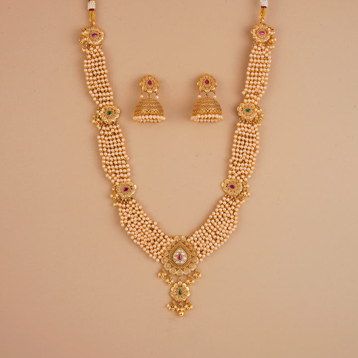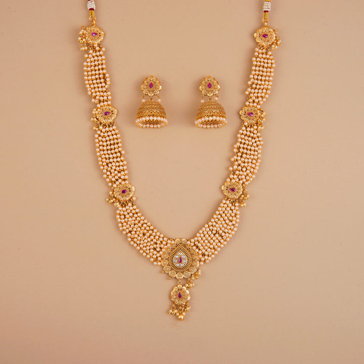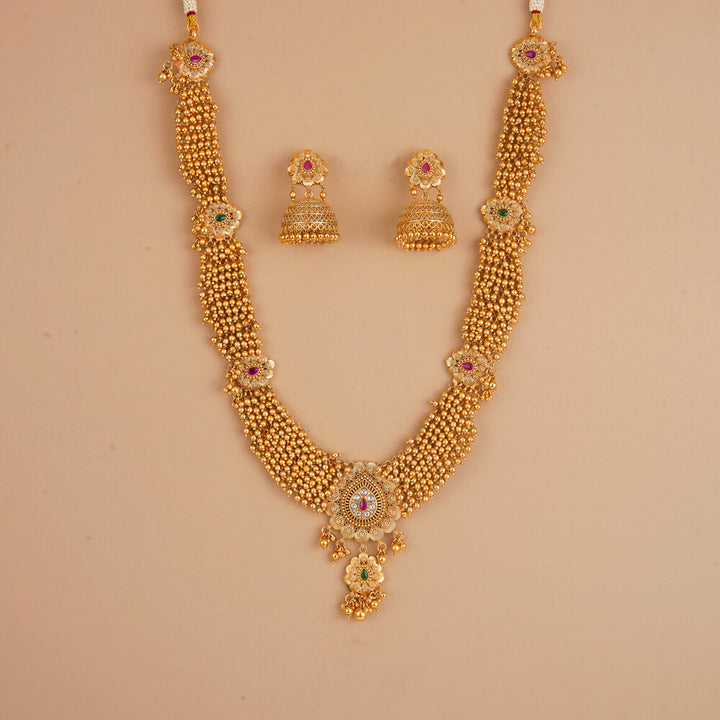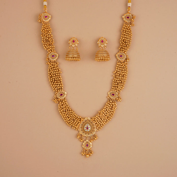 225222 Antique Classic Necklace Set With Matte Gold Plating