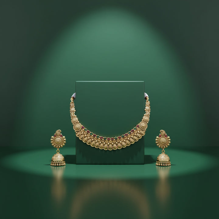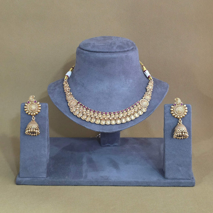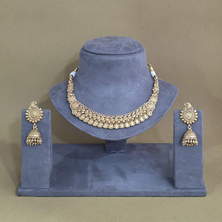 228376 Antique Classic Necklace Set With Matte Gold Plating