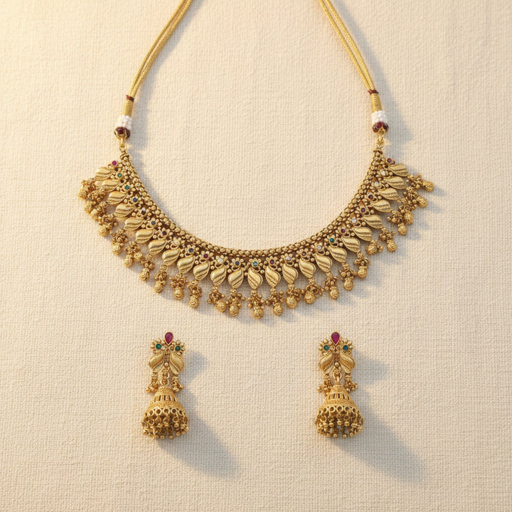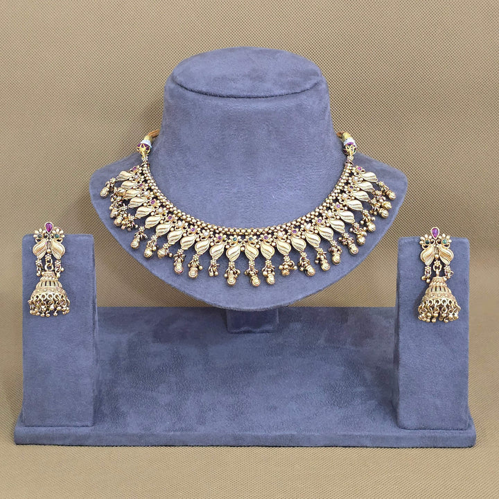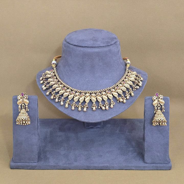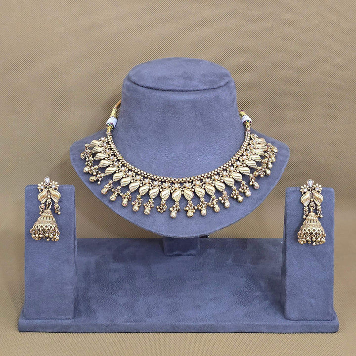 228705 Antique Classic Necklace Set With Matte Gold Plating