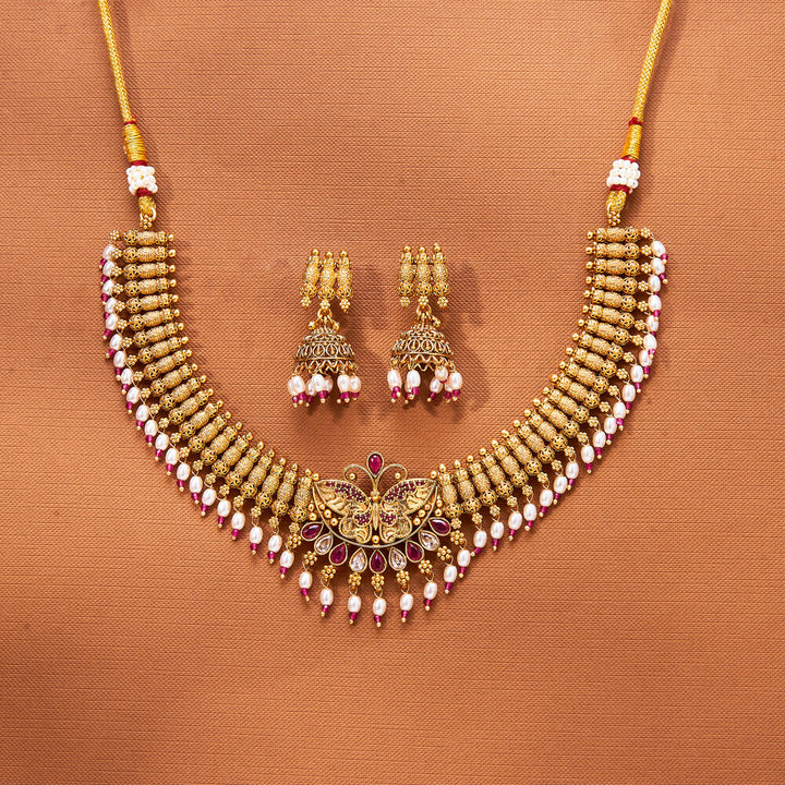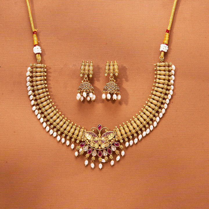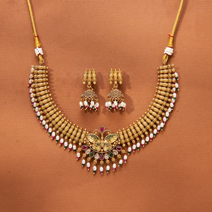Weight: 69.0 Grams, Regular Size And Adjustable,Bollywood Look,Antique Necklace Set