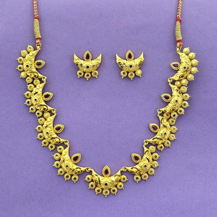 Weight: 60.0 Grams, Earring Height = 25 mm || Width = 22 mm,Regular Size And Adjustable,Latest Design,Gold Plating,Antique Necklace Set
