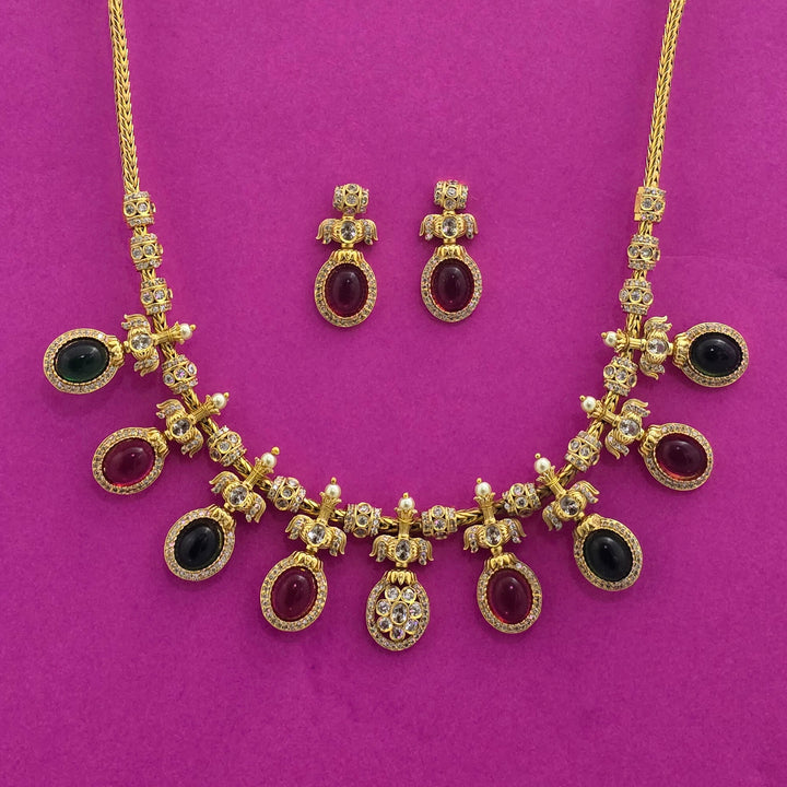Weight: 67.0 Grams, Earring Height= 30 mm || Width = 12 mm,Regular Size And Adjustable,Bollywood Look,Gold Plating,Antique Necklace Set