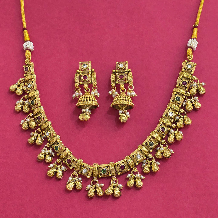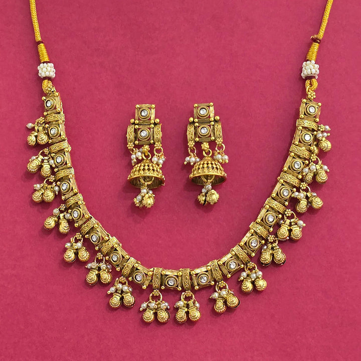 Weight: 50.0 Grams, Earring Height = 45 mm || Width = 20 mm,Regular Size And Adjustable,Elegant Look,Gold Plating,Antique Necklace Set