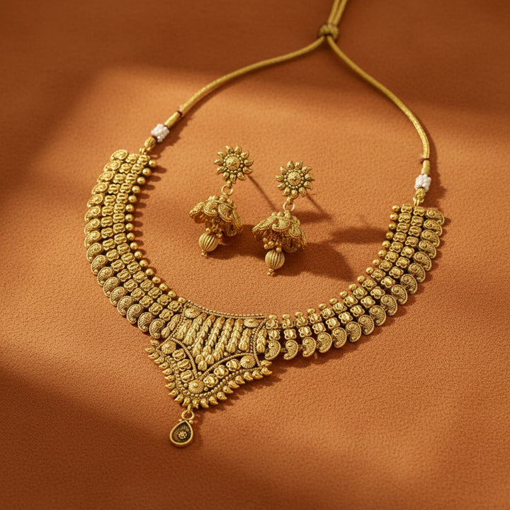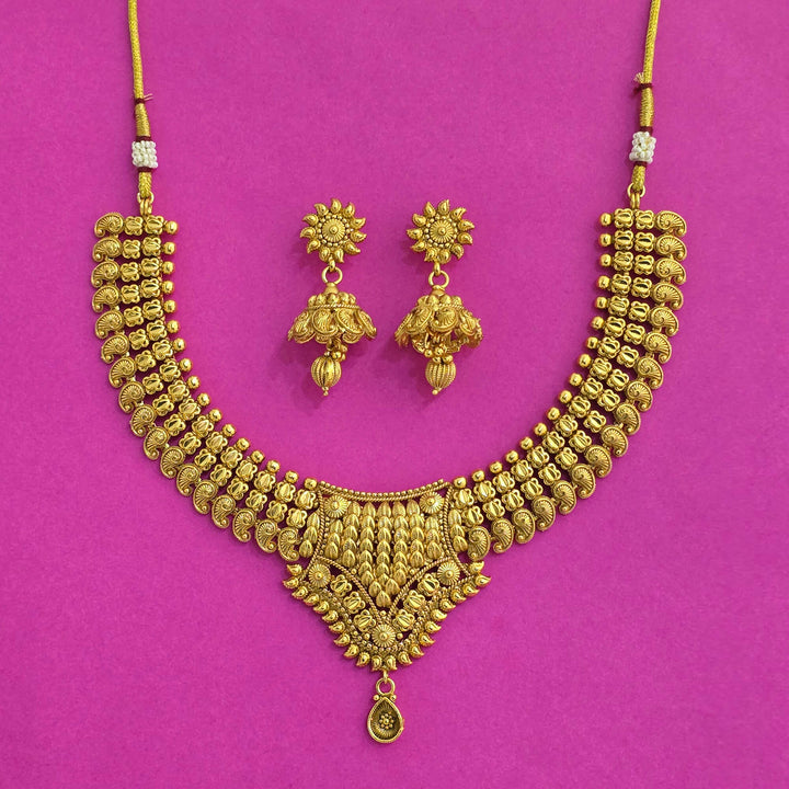 Weight: 84.0 Grams, Earring Height = 50 mm || Width = 22 mm,Regular Size And Adjustable,Plain Gold Necklace,Gold Plating,Antique Necklace Set