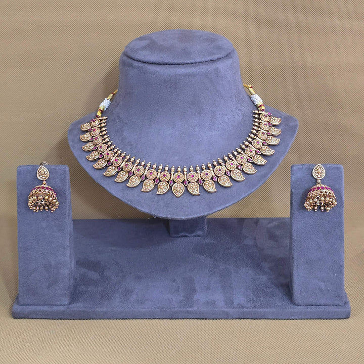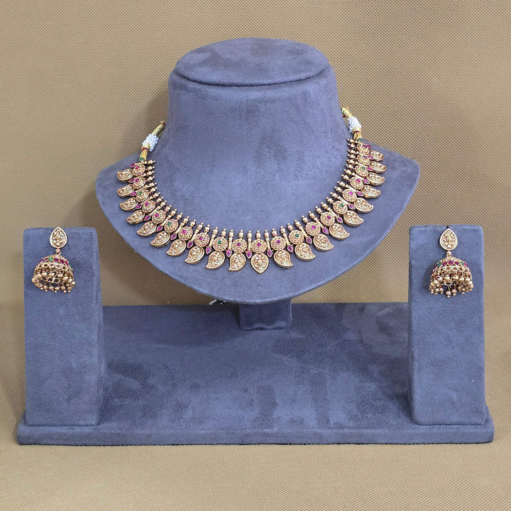 Weight: 71.0 Grams, Earring Height = 33 mm || Width = 22 mm,Regular Size And Adjustable,Elegant Look,Gold Plating,Antique Necklace Set