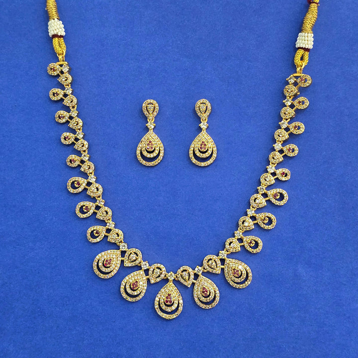 Weight: 38.0 Grams, Earring Height = 30 mm || Width = 11 mm,Regular Size And Adjustable,Latest Design,Gold Plating,Antique Necklace Set