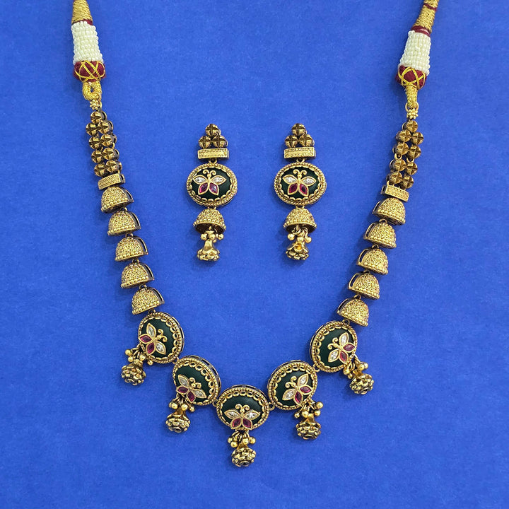 Weight: 66.0 Grams, Earring Height = 48 mm || Width = 18 mm,Regular Size 12 Inches With Adjustable Option,Gold Plating,Antique Necklace Set