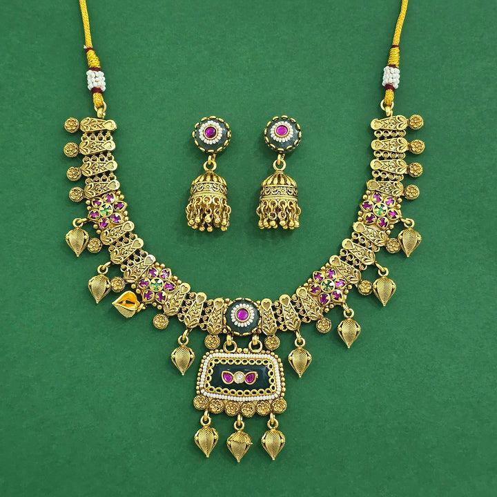 Weight: 81.0 Grams, Earring Height = 44 mm || Width = 18 mm,Regular Size And Adjustable,Elegant Look,Gold Plating,Antique Necklace Set