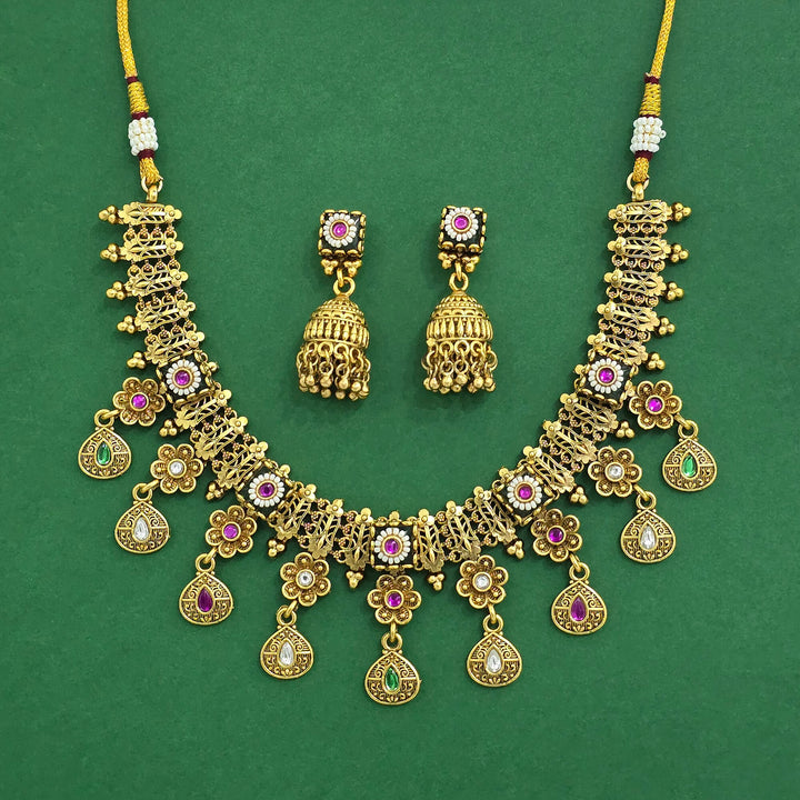 Weight: 79.0 Grams, Earring Height = 40 mm || Width = 18 mm,Regular Size And Adjustable,Elegant Look,Gold Plating,Antique Necklace Set