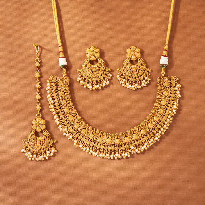 Weight: 160.0 Grams, Regular Size And Adjustable,Plain Gold Necklace,Antique Necklace Set