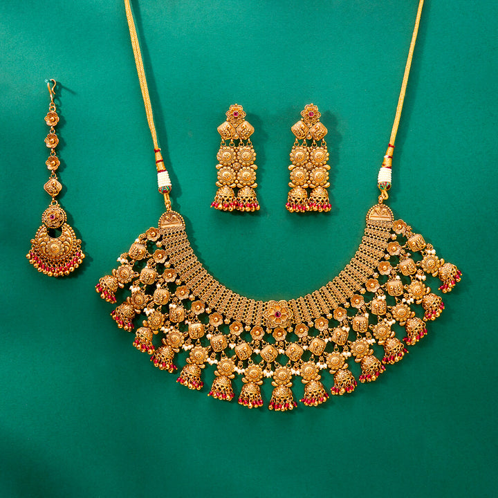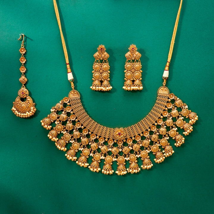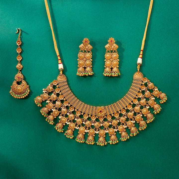 Weight: 222.0 Grams, Regular Size And Adjustable,Bollywood Look,Antique Necklace Set