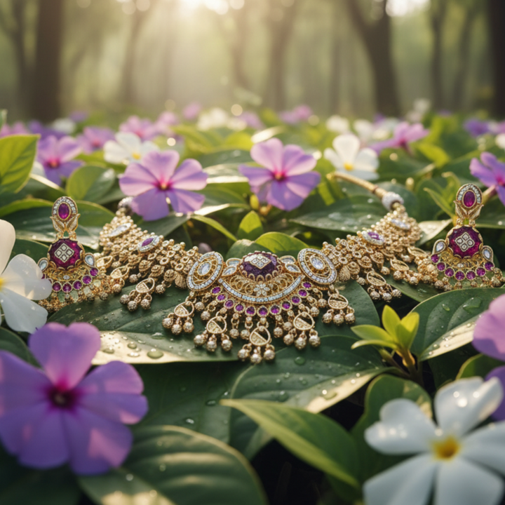 Simaya Jewels offers an exclusive collection of finest quality crafted Fashion Jewellery in various colors. We make sure that our collection of Indo Western Stone Necklace With Gold Plating are beautiful, elegent & will surely galvanize you, becauseour products are unique, comfortable, fashion forward & very popular for the rich look. Base Metal of our product is Alloy. We pack all the products using quality packaging material to ensure safe and secure transportation.s. We make sure that our collection of Indo Western Stone