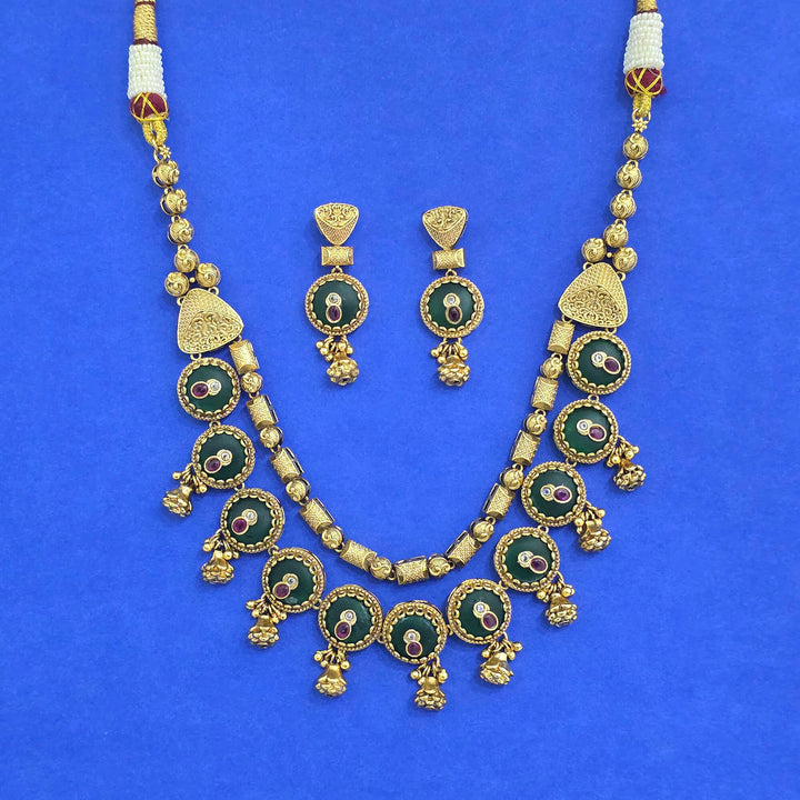 Weight: 82.0 Grams, Earring Height = 47 mm || Width = 15 mm,Regular Size (Approx 14 Inch) & Adjustable,Matte Gold Plating,Antique Necklace Set