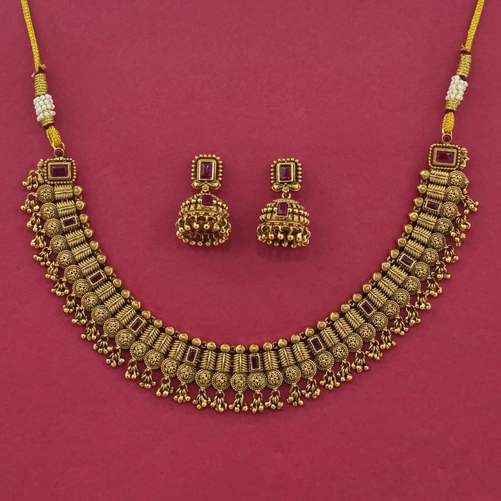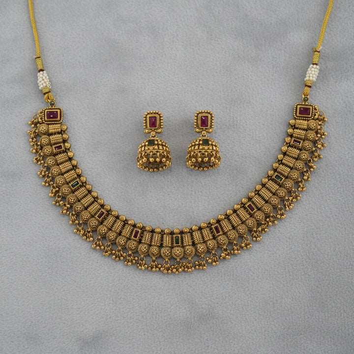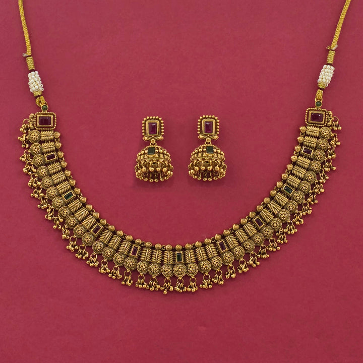 Weight: 73.0 Grams, Earring Height = 35 mm || Width = 22 mm,Regular Size And Adjustable,Handmade Design,Matte Gold Plating,Antique Necklace Set