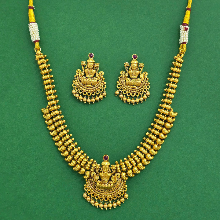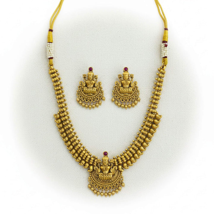 Weight: 67.0 Grams, Earring Height = 37 mm || Width = 25 mm,Regular Size And Adjustable,Handmade Design,Matte Gold Plating,Antique Necklace Set