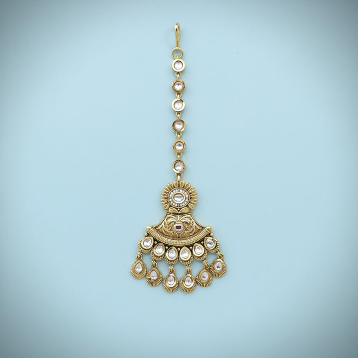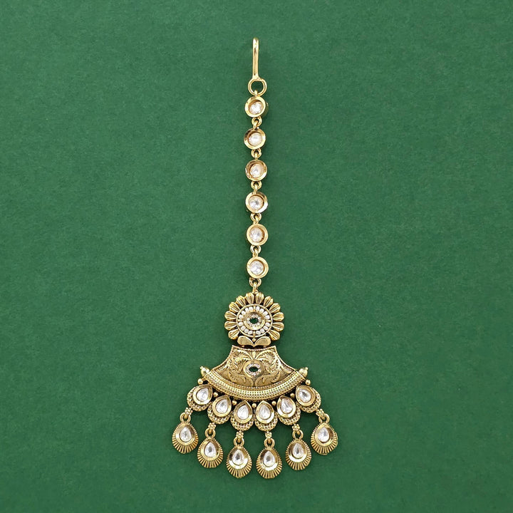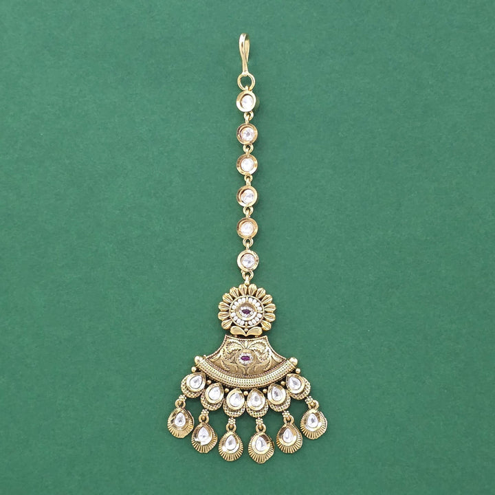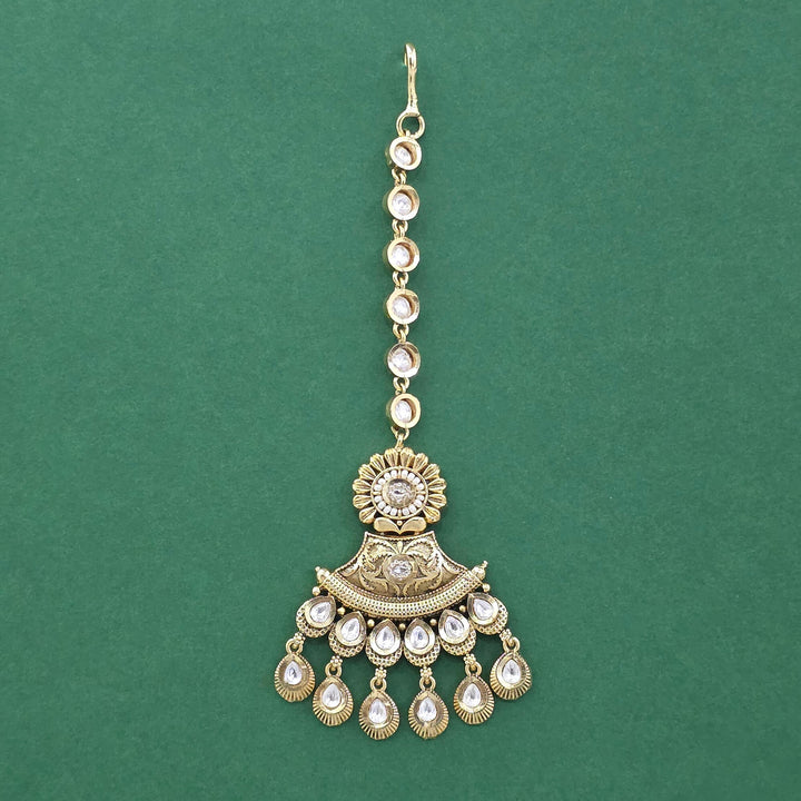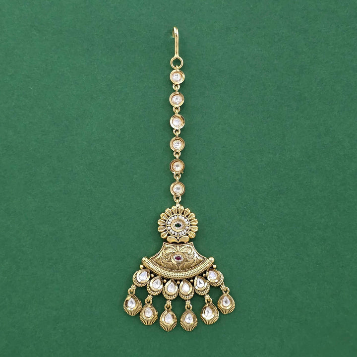 Weight: 16.0 Grams, Height = 125 Mm || Width = 43 Mm,Latest Design,Matte Gold Plating,Antique Maang Tikka